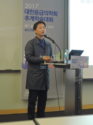 20일 송도 컨벤시아에서 열린 ‘2017 대한응급의학회 추계학술대회’에서 신상도 교수(서울의대)[사진 左]는 ‘응급의료체계 분권화 방향 및 지방자치 응급의료체계 구축의 필요성’에 대해 피력했다.