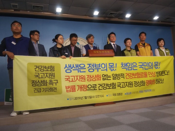 단체는 또한 “지원 기준이 명확하지 않은 현 건강보험 정부지원법을 개정해 보험료 지원방식과 수준, 지원 규정의 명확화, 건강증진기금의 지원규정 현실화, 한시적 규정 폐지, 사후정산제를 도입하라”고 촉구했다.