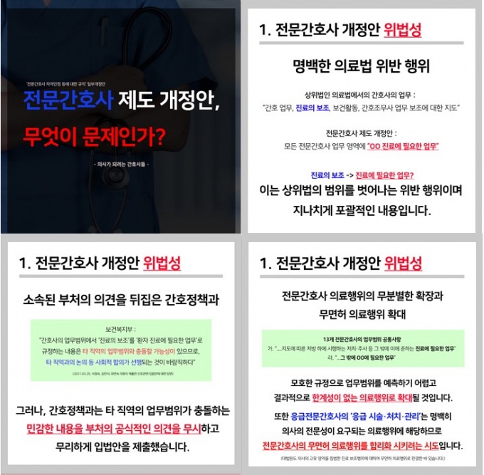 이어 “응급전문간호사의 ‘응급‧시술‧처치‧관리’는 명백한 의사의 전문성이 요구되는 의료행위에 해당돼 전문간호사의 무면허 의료행위를 합리화하려는 의도"라고 덧붙였다.