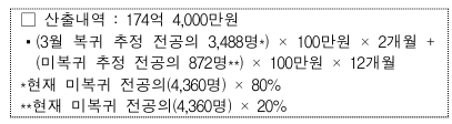 이 174억원은 내년 3월 복귀 추정 전공의(미복귀자의 80%)에 대한 2개월분 수당, 미복귀 추정 전공의에 대한 12개월분 수당을 산출한 것이다.