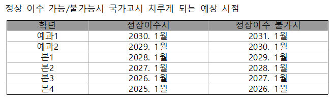 특히 예과 1학년 학생들이 정상적으로 교육을 못 받으면 국시를 2031년 1월에 칠 수 있게 된다.