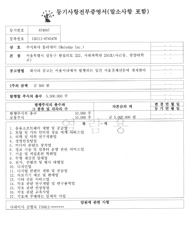 이 회사 등기부등본(별첨)을 확인한 결과, 김형숙 교수는 대표이사, 김창경 교수는 감사로 참여했다. 즉 김형숙 교수와 김창경 교수가 경제적 공동체임을 추정할 수 있는 사안이다.