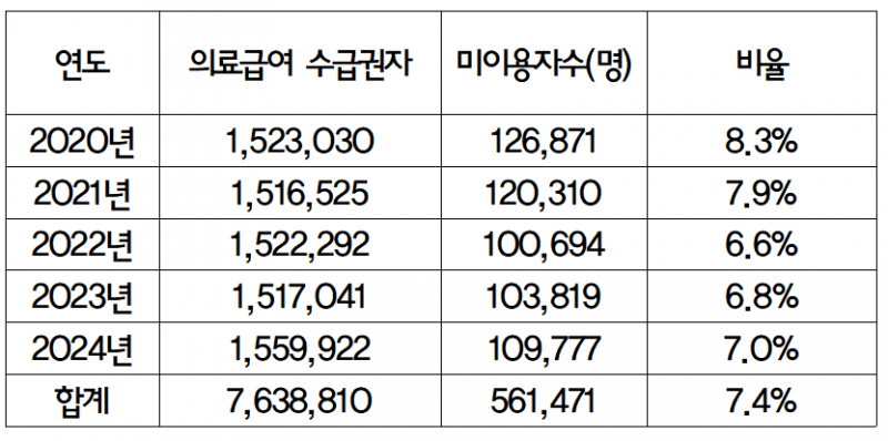 그럼에도 복지부는 ‘과소 의료이용자’에 대한 정의나 관리 기준조차 마련하지 않았으며, 전수 실태조사도 시행하지 않은 것으로 확인됐다.