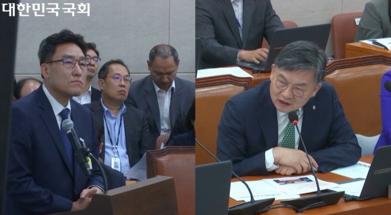 김 의원은 임철환 이사에게 사과할 의향이 있냐고 물었고, 임 이사는 "사실이라면 사과하겠다"고 답했다.