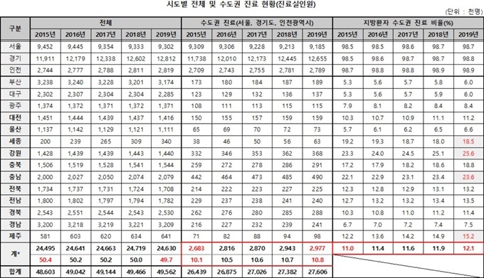 특히 지난 한해 동안 지방 환자들이 수도권 의료기관에서 쓴 진료비는 약 4800억원에 달하는 것으로 집계됐다. 이에 따라 수도권 중심의 병상 증설을 제한해야 한다는 목소리가 나온다.