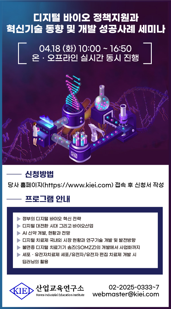 [4/18] 디지털 바이오 정책지원·혁신기술 동향 및 개발 성공사례 세미나