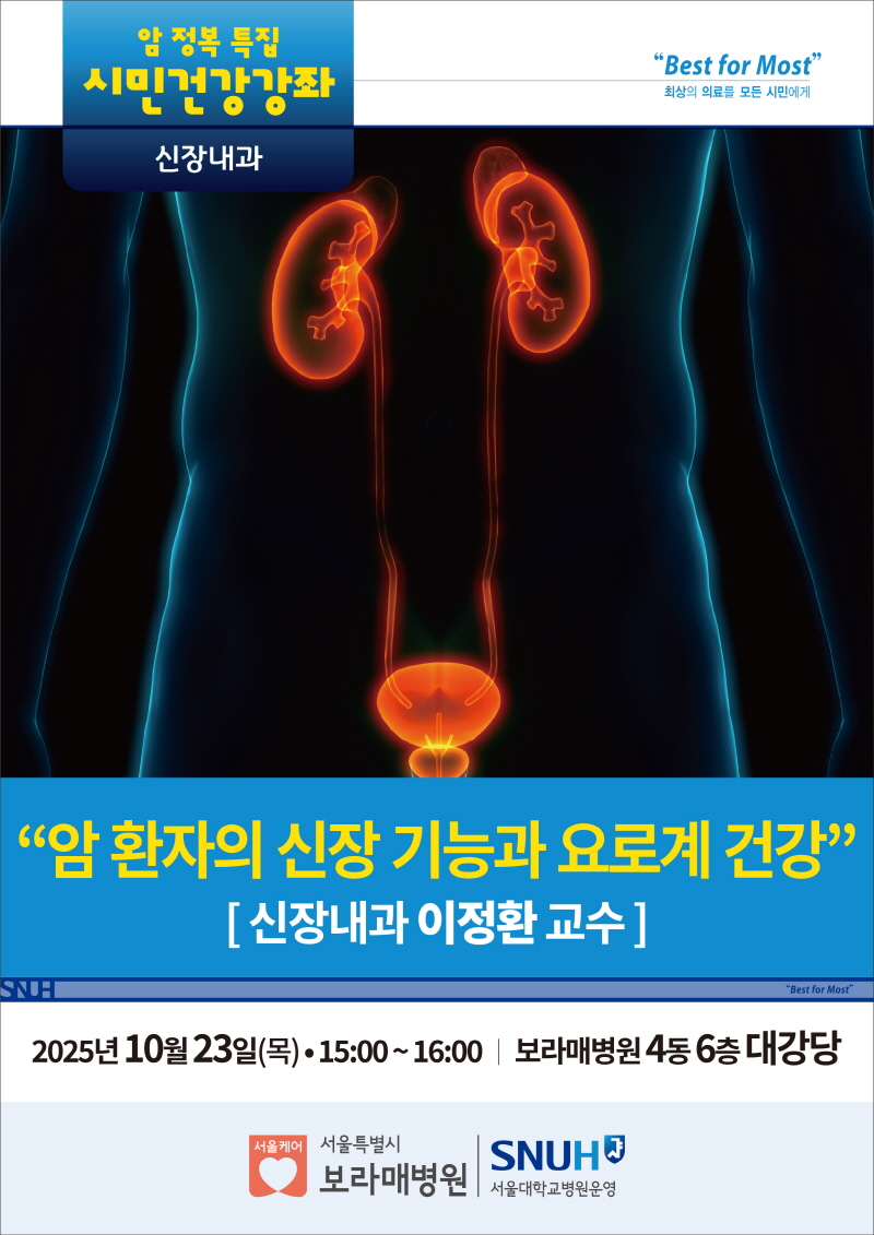 [10/23]보라매병원 시민건강강좌 ‘암 환자 신장 기능과 요로계 건강’