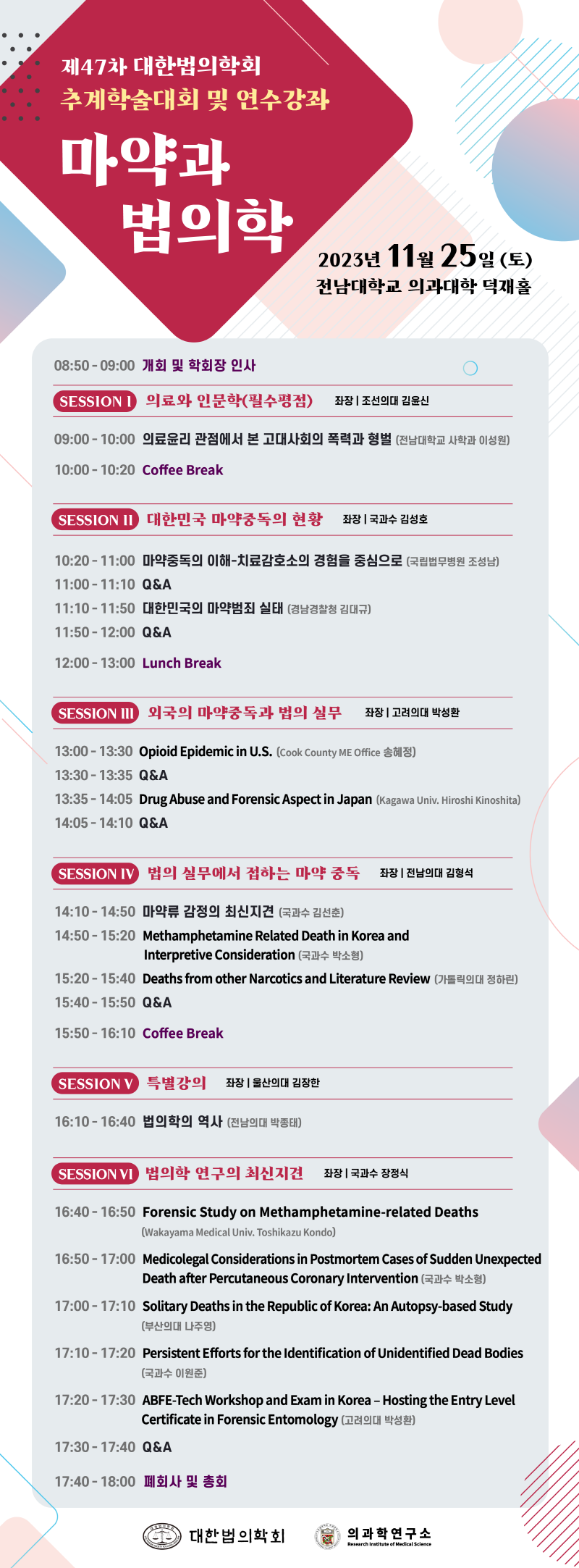 [11/25]제47차 대한법의학회 추계학술대회 및 연수강좌