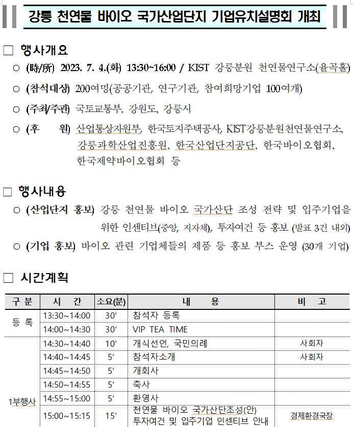 [7/4] 강릉 천연물 바이오 국가산업단지 기업유치 설명회