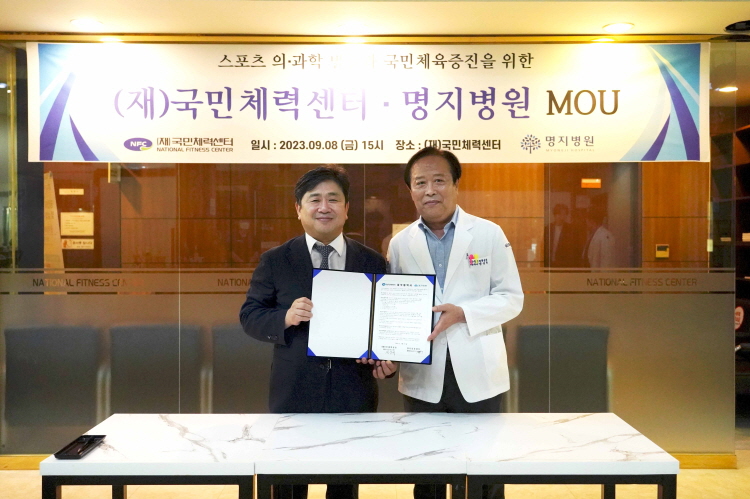 명지병원 스포츠의학연구소(소장 김진구)와 재단법인 국민체력센터(원장 선상규)와 9월 8일 서울 올림픽공원 내 위치한 국민체력센터에서 협약을 맺고, 스포츠의학 연구와 교류 활성화를 위해 상호 협력키로 했다.