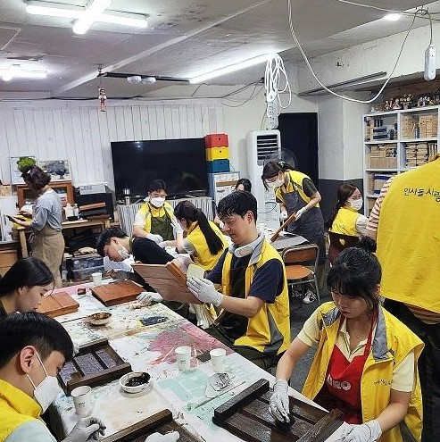 동국제약 임직원들이 ‘폐목재Blooming’ 활동에 참여하는 등 ESG 경영을 실천하는데 앞장서고 있다. 동국제약 임직원들로 구성된 ‘인사돌플러스 사랑봉사단’은 지난 달 18일 서울 강서구에 위치한 우드락 공작소 목공방에서, 수거한 폐목재를 활용해 가구와 소품을 제작했다.
