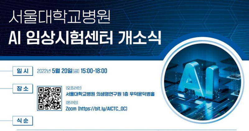서울대병원은 오는 20일 오후 3시부터 의생명연구원 윤덕병홀에서 온·오프라인으로 ‘AI 임상시험센터 개소식’을 개최한다.
