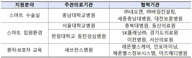 스마트 수술실, 입원환경, 환자 및 보호자 교육 등 ‘환자중심 소통’ 3개 분야에 대한 공모에는 총 15개의 컨소시엄이 지원했으며, 최종 4개 컨소시엄이 자격을 얻었다.