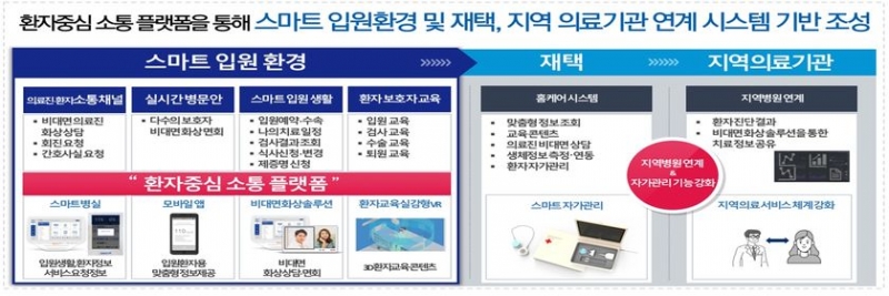 주관기관인 서울대병원은 환자 중심 소통 플랫폼을 구축해 입원-퇴원-재택 환경에서 환자와 보호자가 치료과정에 참여하는 스마트 입원환경을 구현한다.