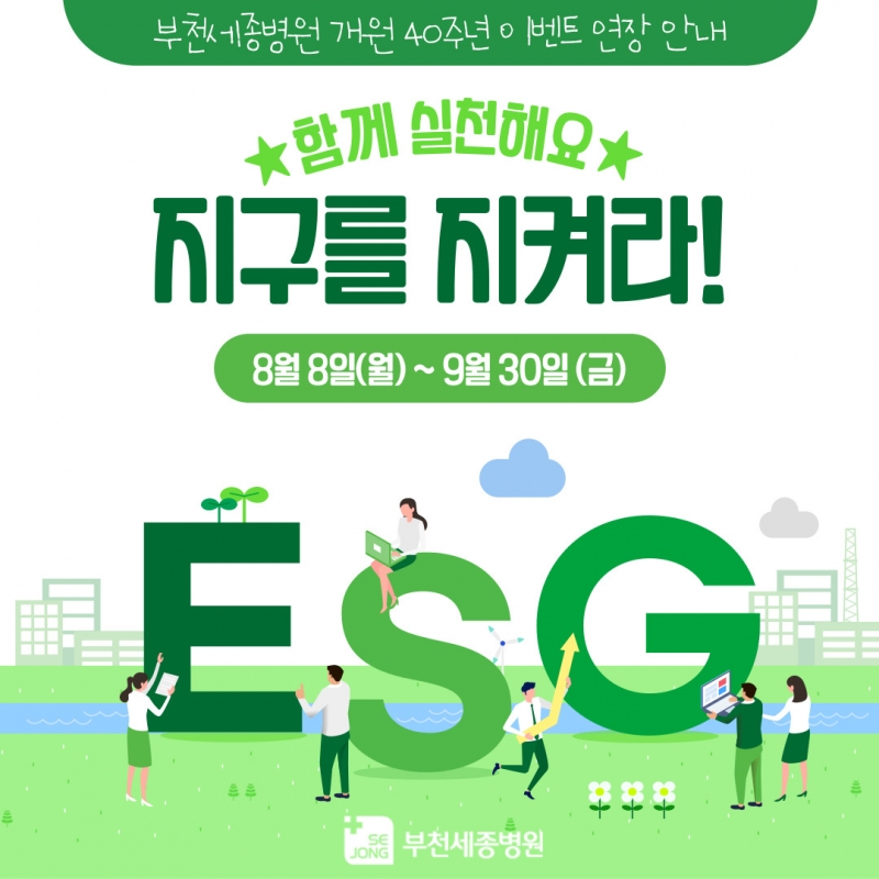 또 인스타그램에 #세종병원 #부천세종병원 #부천세종병원40주년 #세종병원지구를지켜라 해시태그와 함께 업로드하고, ESG 활동 이벤트 영상 시청 후 영상 내 문제 정답을 댓글로 다는 방식으로도 참여 가능하다.