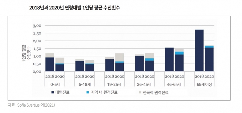 특히 스웨덴은 공공 부문에서도 전화상담과 같은 원격의료를 제공하고 있으며 코로나19 이후에는 일차의료에서 감염 확산 위험에 따라 대면진료가 감소하고 원격진료 건수가 증가하는 경향을 보였다.