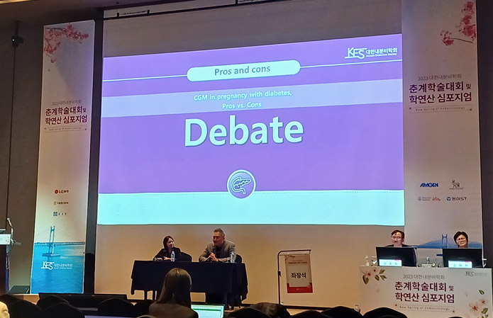 당뇨병 관리 시 연속혈당측정기(CGM) 유용성에 대한 평가가 높아지는 가운데, 현재 보험이 적용되지 않는 2형당뇨병과 임신성당뇨병에 대한 학계 평가 또한 높은 관심사다. 이들에 대한 CGM 보험 적용은 윤석열 대통령이 발표한 국정과제이기도 했는데, 필요성을 촉구하는 목소리는 커지고 있지만 1형 당뇨병에 비해서는 연구 근거가 부족한 실정이다. 이런 가운데 ‘2023년 대한내분비학회 춘계학술대회’ 마지막 날인 지난 4월 8일, 국내 내분비학계 시각을 확인할 수 있었다. 이날 4명의 내분비내과 교수들은 각각 찬성, 반대 입장을 펼치며 찬반 토론을 진행했다. 다만 반대 입장의 토론자들도 CGM 사용을 반대하기보다는 현실적으로 미비한 상황 보완과 사용 확대에 따른 고민 등을 제시하는 시각에 가까웠다.