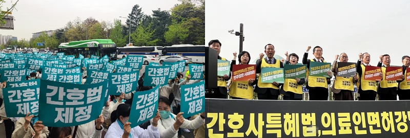 4월 13일 국회 본회의 통과가 유력했던 간호법과 의료인면허취소법(의료법 개정안)이 또 다시 다음(27일) 본회의로 연기되며 분열된 보건의료계 긴장감이 최고조에 이르렀다.