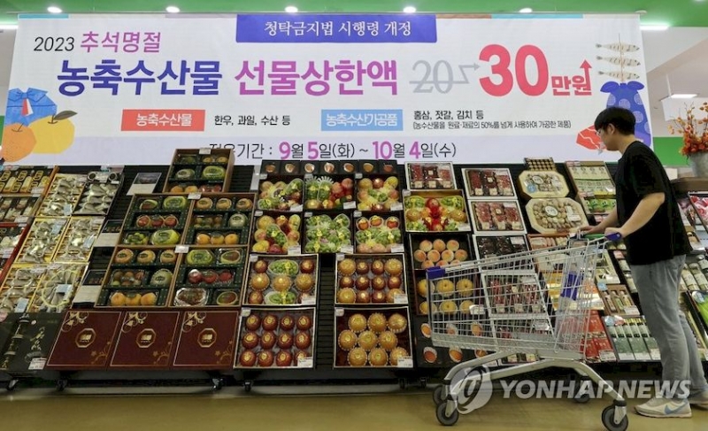 농수산물·농수산가공품 선물 상한액을 기존 10만원에서 15만원으로 상향하고, 설날과 추석 명절의 경우 기존 20만원에서 30만원으로 조정하는 게 개정안의 핵심이다.