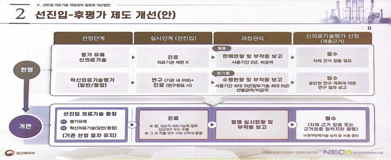 복지부가 개선을 예고한 신의료기술 선진입 후평가 제도가 임상에 곧바로 적용된다는 점에 대해 산업계와 의료계는 입장차를 보였다.