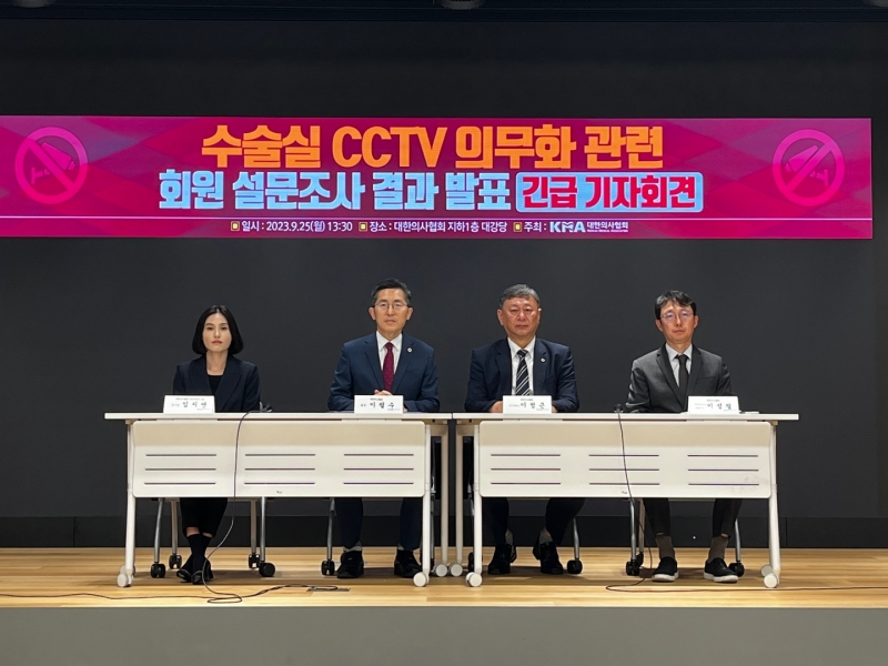 대한의사협회는 25일 수술실 CCTV 설치에 관한 내용을 담은 의료법 개정안 시행 첫날 긴급기자회견을 갖고 혼란에 빠진 의료계의 상황을 전하며, 계도 기간 보장 및 예산 지원 등을 촉구했다.