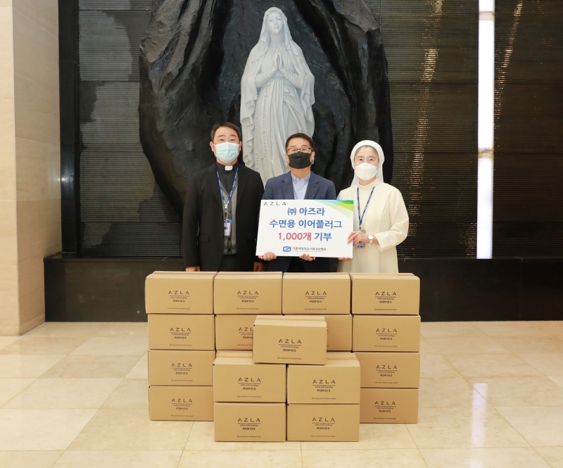가톨릭대학교 서울성모병원은 6일 음향기기 회사 ㈜아즈라부터 수면용 귀마개 1000개를 기증받았다고 밝혔다.