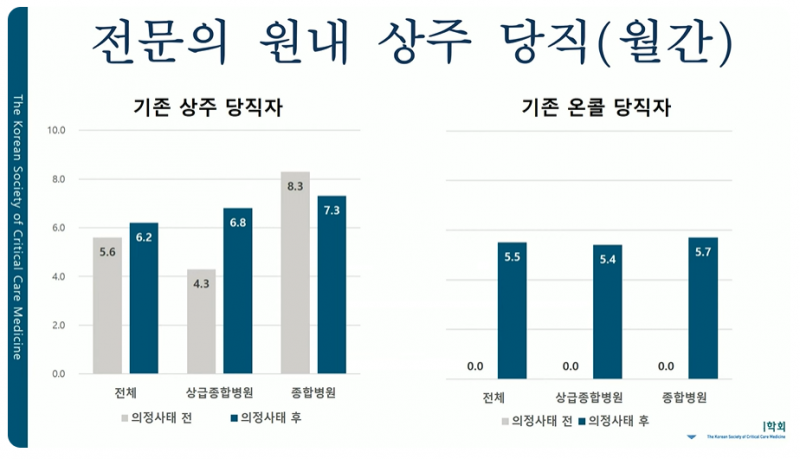 그 결과 자연스레 기존에도 타 전문의 대비 높던 중환자실 전담전문의의 주당 근무시간도 늘었다.