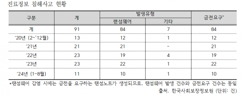 자료에 따르면 2020년 이후 총 91건의 진료정보 침해사고가 일어났고 진료정보 이외 침해사고 역시 129건에 달했다.