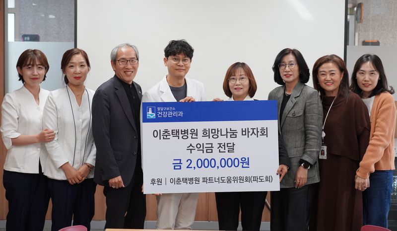 이춘택병원(병원장 윤성환)이 10월 23일 ‘제9회 희망 나눔 바자회’를 통해 모은 수익금 전액을 경기도 수원시 팔달구보건소에 전달했다.