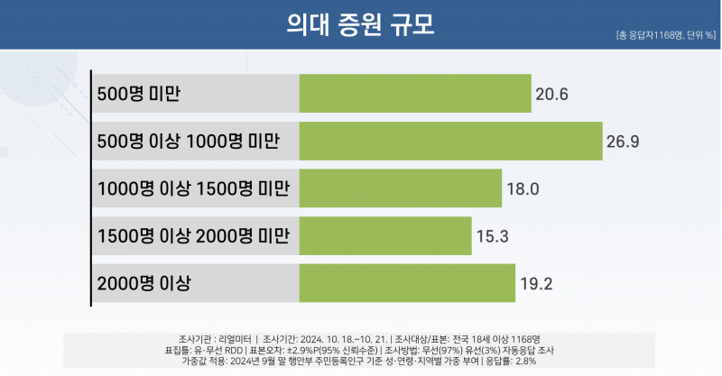 증원 '찬성' 58.4%···‘500명~1000명’ 수준이 적합