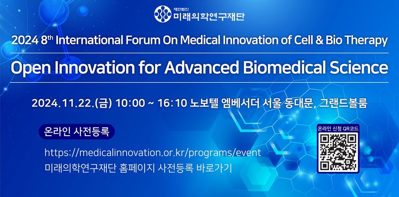 재단법인 미래의학연구재단(이사장 이승규)과 서울대병원 세포치료실용화센터(센터장 김효수)는 오는 22일 노보텔 앰베서더 동대문 호텔에서 ‘제8회 미래의학국제포럼’를 개최한다.