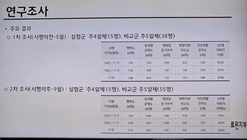 한편, 전문가들은 타 분야 주4일제 시범사업 결과와 비교해 보건의료 분야 주4일제 효과는 분명하다고 봤다.