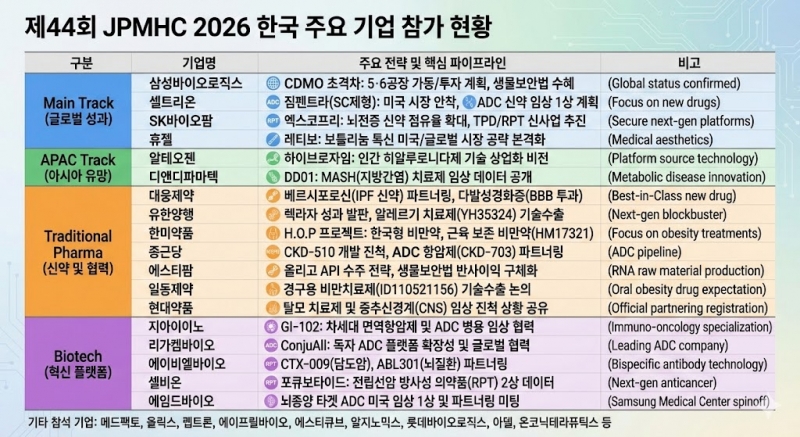 국내 전통 제약사들은 제네릭 중심 사업 구조를 탈피하고, 오픈 이노베이션을 통해 확보한 혁신 신약 파이프라인으로 무장해 JPMHC 2026에 참가한다.