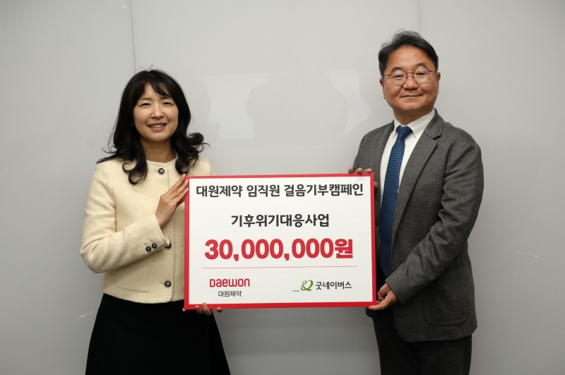 대원제약은 목표 걸음 달성에 따라 조성된 기부금 3000만원을 굿네이버스에 전달했다. 전달된 기부금은 기후위기 대응사업 지원 등에 사용될 예정이다.
