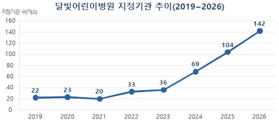 복지부에 따르면 2023년 말 57개소였던 달빛어린이병원은 약 3년간 지속적으로 증가해 2026년 1월 기준 142개소로 늘었다.