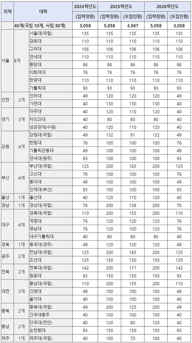 특히 2026학년도에는 정부의 의대증원 유예 결정으로 입학정원은 유지된 상태에서 모집인원은 기존 규모로 선발해야 했다.