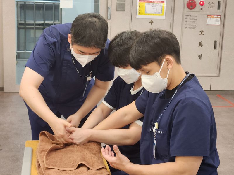 포근한재활병원 재활치료센터는 대학을 갓 졸업한 신규 치료사가 입사하면 곧바로 재활의료 현장에 투입하지 않고 2주 동안 교육만 시킨다.