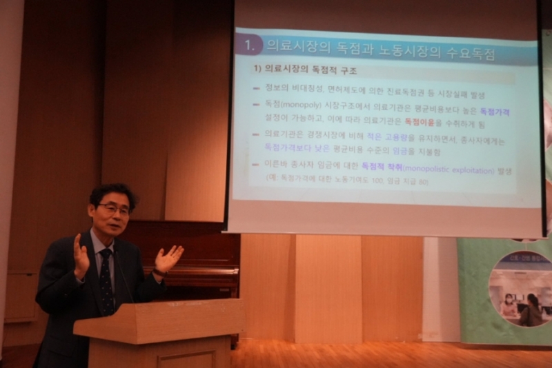 그는 “의료시장의 수가 인상, 가산제 도입 등은 의료기관 수입을 증가시키지만 고용과 임금은 노동시장에 의해 결정된다”며 “의료수가와 노동시장은 별개 기전에 의해 작동하므로 의료수가가 고용 및 임금으로 직접 연결되지 않는 셈”이라고 설명했다.