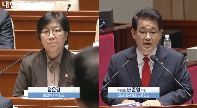 정은경 보건복지부 장관은 8일 추가경정예산안 심사를 위한 국회 예산결산특별위원회 전체회의에서 배준영 국민의힘 의원(인천 중구강화군옹진군)의 질의에 이 같이 답변했다.