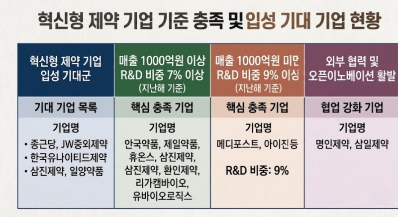 또 최근 R&D 비중과 협력 현황을 기준으로 보면, 현재 혁신형 리스트에 포함되지 않았더라도 새 기준 아래에서 존재감이 커질 기업군은 적지 않다.