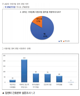 참여 희망 비율은 83.3%였고, 희망하는 이유로는 ‘육체적·정신적 피로 완화’가 77.8%를 차지하며 압도적이었다.