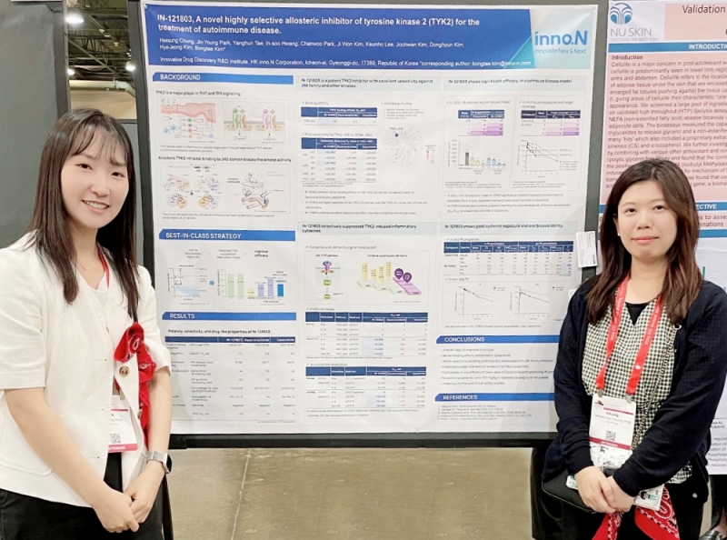 알로스테릭 티로신 키나아제 2 저해제(TYK2 Inhibitors, 물질명 IN-121803, 이하 ‘알로스테릭 TYK2 저해제’)계열로, 이 신약 물질의 연구결과를 소개한 것은 이번 학술대회가 처음이다.