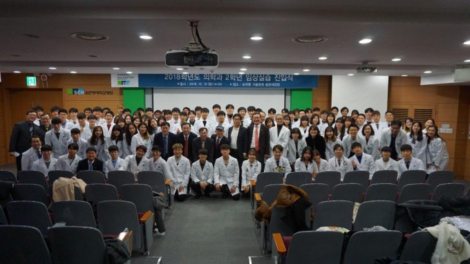 순천향의대는 최근 순천향대서울병원 동은대강당에서 임상실습 진입식 행사를 개최했다. 진입식은 임상의학 통합강의와 임상표현학습, 문제바탕학습 등을 마치고 임상실습을 시작하는 의학과 2학년생 90명에게 의사 가운과 청진기를 수여하는 행사다. 특히 올해는 학생들의 학부모를 초청해 교수들과 함께 가운을 입혀주고 청진기를 목에 걸어주며 축하와 격려를 하는 시간을 마련했다. 순천향대의대 동문회에서도 실습 가운을 증정하고 조영덕 사무총장이 직접 참석해 후배들을 격려했다.