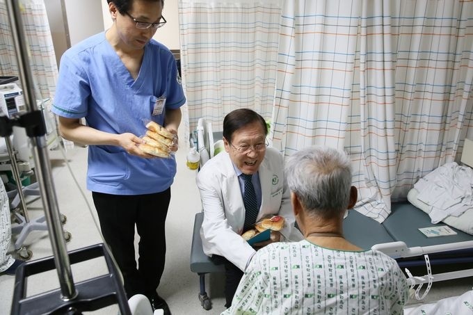전체 입원환자들에게 성탄축하 빵을 나눴다