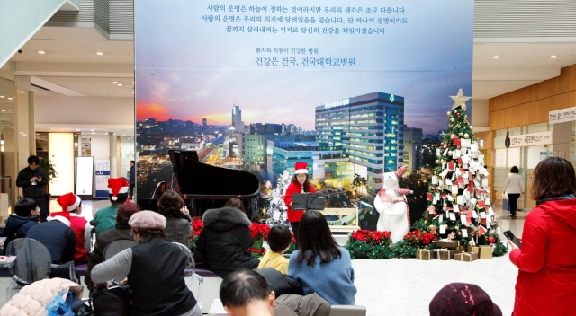 건국대병원은 크리스마스를 맞아 12월24일 특별한 정오의 음악회와 함께 관객들에게 크리스마스 선물을 전달했다. 이번 공연은 장애아티스트들로 이뤄진 아트위캔 팀이 펼쳤으며 피아노와 클라리넷 등으로 영화 캐리비안의 해적과 거위의 꿈 등 유명 영화 OST와 가요, 크리스마스 캐롤 등 호응을 얻었다.