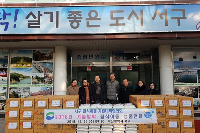 부산대병원(원장 이창훈)은 지난 12월26일 부산광역시 서구청 본관에서 결식 우려 아동을 위한 성품 전달식을 가졌다. 겨울방학 기간을 맞아 가정에서 결식 우려가 있는 서구 관내 250여 명의 아동들을 대상으로 서구 결식아동 지원대책협의회와 1인당 백미 10Kg과 라면1박스 등이 전달될 예정이다.