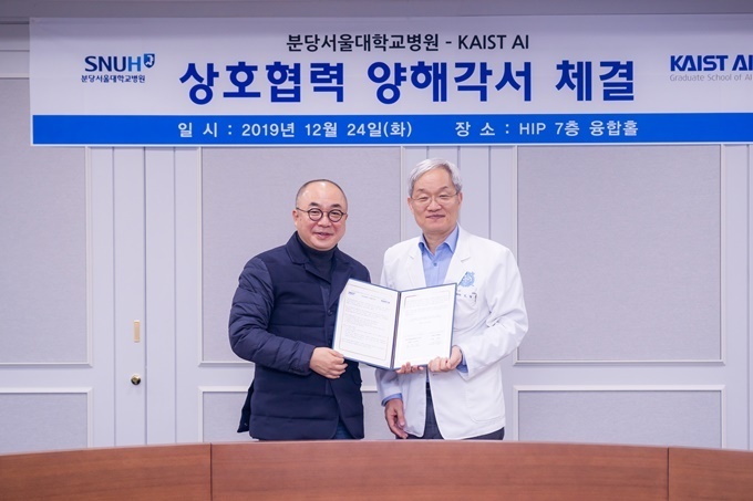 분당서울대병원은 12월24일 KAIST 인공지능(AI) 대학원과 ‘의료분야 인공지능 관련 연구’ 양해각서를 체결했다. 양 기관은 MOU 체결을 계기로 ▲연구협력 기반 조성을 위한 인적 및 학술 교류 ▲공동연구 및 기술 개발을 위한 정보 공유 및 지원 등 학문 교류 ▲의료분야 인공지능 관련 연구인재 양성을 위한 프로그램 개발 및 운영 등에서 협력할 예정이다.