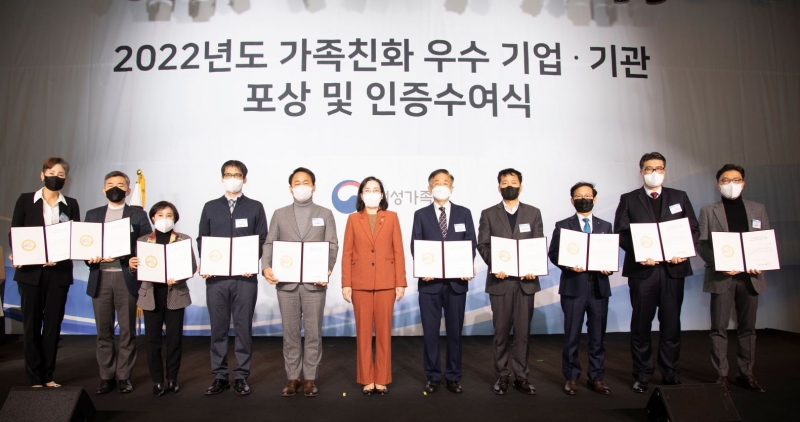 대웅제약은 지난 14일 여성가족부 주관 가족친화기업 4회 연속 인증을 통해 ‘가족친화 최고기업’으로 지정됐다. ‘가족친화 최고기업’ 인증은 가족친화인증제가 도입된 2008년 이후 15년 동안 가족친화기업 인증을 유지한 기업에게 부여되며, 대웅제약은 업계 최초로 ‘가족친화 최고기업으로 선정됐다.
