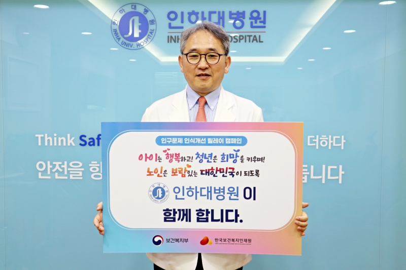 인하대병원은 이택 병원장이 ‘인구문제 인식개선 릴레이 캠페인’에 동참했다. 이 캠페인은 보건복지부와 한국보건복지인재원의 공동 주관으로 진행 중이다. 인구구조 변화 심각성에 대한 사회적 공감대를 형성하고, 저출산 문제에 대한 국민적 관심과 참여를 이끌어내기 위해서다. 인하대병원 이택 병원장은 임원섭 인천소방본부장 지목을 받아 캠페인에 참여했으며, 다음 주자로 인하대학교 조명우 총장을 지목했다.