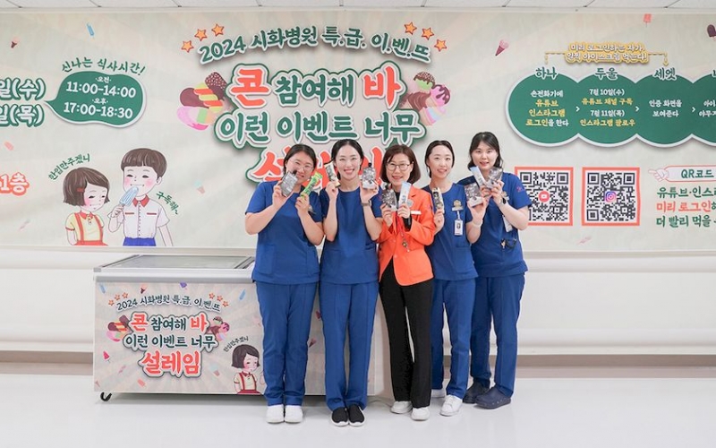 시화병원(이사장 최병철)은 최근 전 직원을 대상으로 여름 맞이 아이스크림 나눔 이벤트를 진행했다. 직원들 사기 증진을 위해 ‘콘(꼭) 참여해바, 이런 이벤트 너무 설레임’이라는 주제로 열린 이번 이벤트는 아이스크림 전용 냉동고를 비치해 시화병원 유튜브·인스타그램을 구독 및 팔로우한 직원들에게 콘, 바, 설레임 아이스크림을 제공했다. 또한 추억의 간식도 함께 증정해 잠시나마 더위와 업무의 고됨을 잊고 동료들과 즐거운 시간을 가졌다.